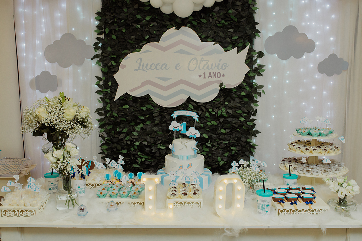 O Tema CÉU para comemorar o batizado e o 1º aninho de vida do Lucca e do Otávio.